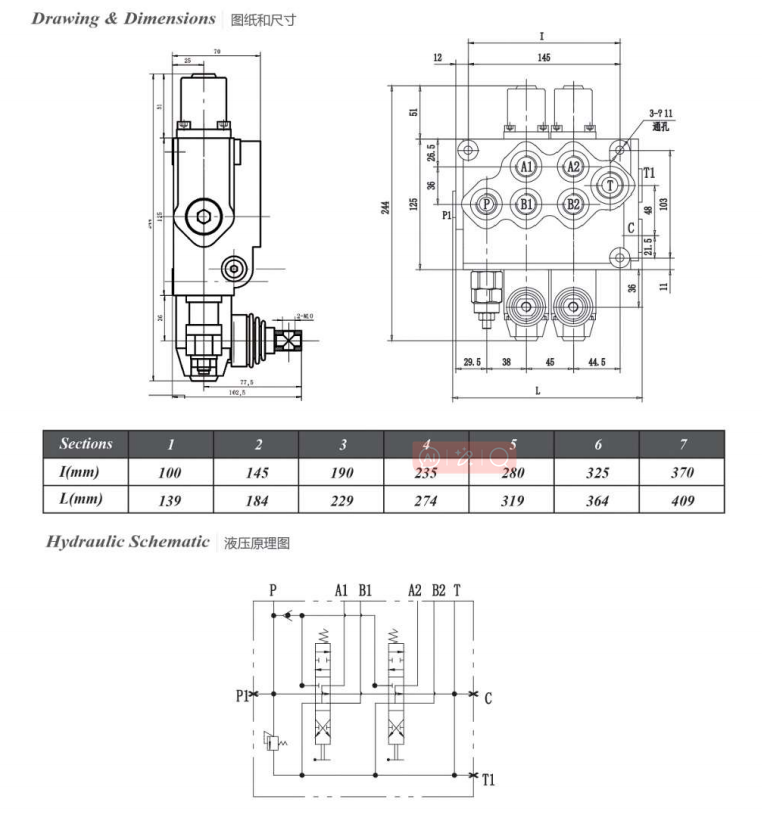 ♦ Inner relief valve: The relief valve inside the valve body is able to adjust the hydraulic system working pressure.