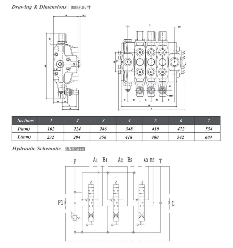 ♦ Inner relief valve: The relief valve inside the valve body is able to adjust the hydraulic system working pressure.
